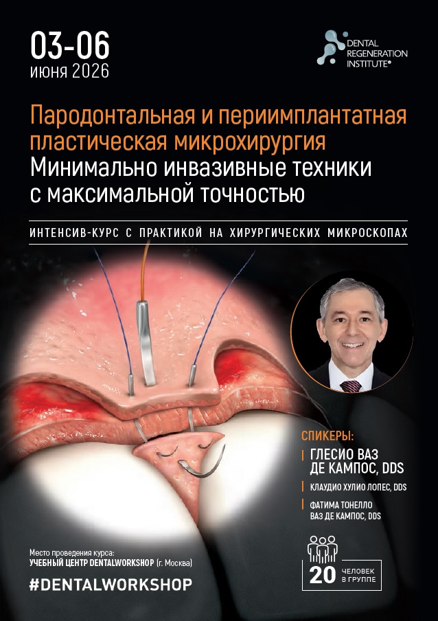 ЦЕЛЬ КУРСА — развитие необходимых навыков для овладения методиками пародонтальной пластической микрохирургии с использованием операционного микроскопа, микроинструментов и малоинвазивных техник. Этот интенсивный практический курс сосредоточен на пошаговом освоении техник закрытия корней, работы с мягкими тканями вокруг имплантатов и восстановления сосочков.